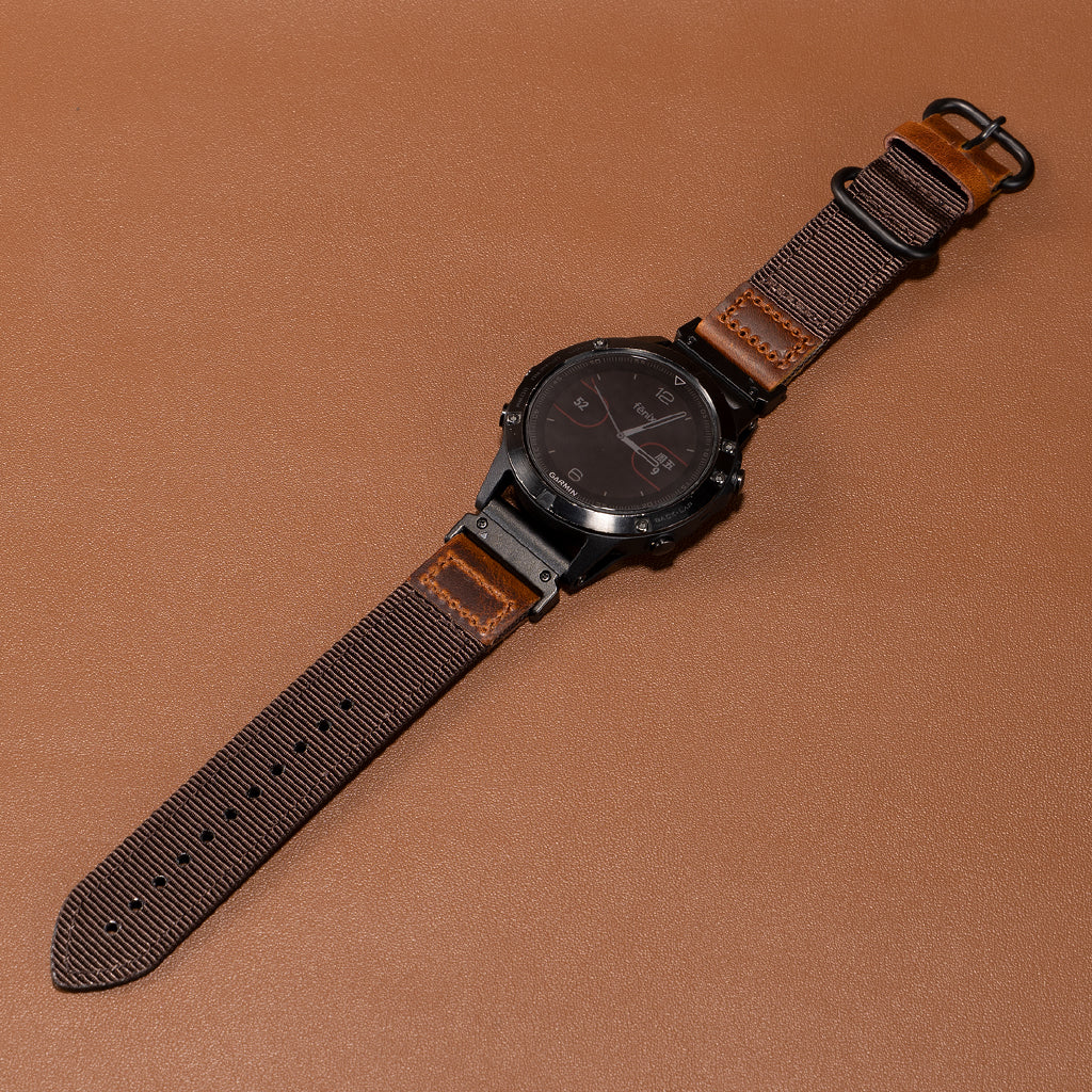 • Oval Buckle Nylon + Leather Band For Garmin