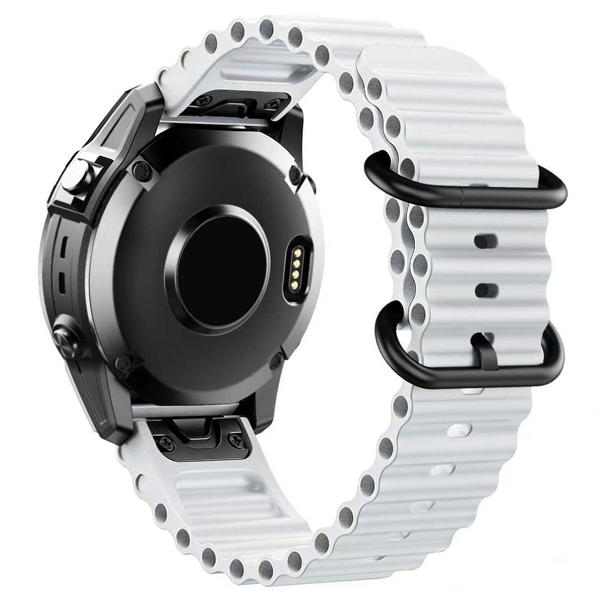 The Ocean Band for Garmin Watches (22mm/26mm) offers a comfortable, secure fit with its sleek silicone design. Perfect for active use, it fits over wetsuits and complements your style with ease.